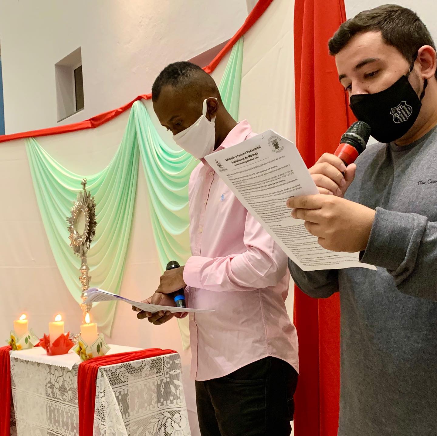 No sábado, dia 01/08, a Paróquia Sagrado Coração de Jesus, de Nova Esperança, abriu oficialmente o Mês Vocacional com uma Vigília pelas Vocações. Após a missa das 19h, os jovens da Equipe Paroquial do SA-PV convidaram os presentes a permanecerem um pouco mais na Igreja Matriz para o momento de oração e adoração por todas as vocações. Essa Vigília Vocacional chegou até os lares dos paroquianos por meio de uma live, veiculada pelas Redes Sociais da Paróquia. Antes disso, eles distribuíram pequenas fotos dos Padres da Arquidiocese, das Irmãs Apóstolas do Sagrado Coração de Jesus, que estão presentes em Nova Esperança, do Diácono José Antonio Pontes e também do futuro Arcebispo de Maringá para as pessoas presentes. Junto com a foto entregaram também uma pequena dezena convidando os fiéis para que, durante o mês de Agosto, rezassem por aqueles vocacionados, para que Deus continue sempre renovando suas vocações.